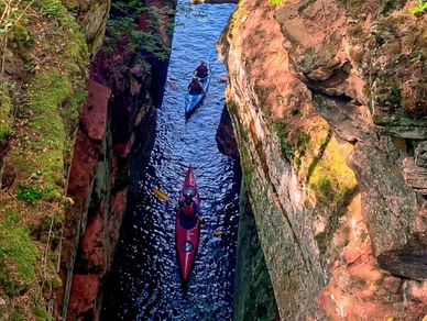 Chequamegon Bay is protected from Lake Superior's direct elements and thus a more predictable sea cave journey. It's a two mile round trip, perfect for leisurely or beginner kayakers. You’ll encounter three beautiful caves and one picturesque sea stack.